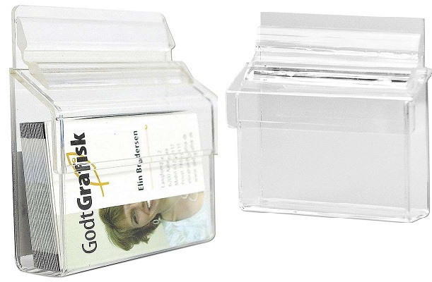 Folderbakjes en visitekaarthouders: enkel- en meervoudig, transparant en in kleur en transparante kubussen