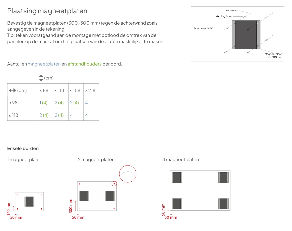 Grote schrijfwand in de meest basale vorm, met rechte hoeken en zonder frame. De randen zijn wit afgelakt. Door de haarscherpe randafwerking sluiten de panelen nauwkeurig op elkaar aan met een minimale naad. Deze Sharp Wall is leverbaar in 4 verschillende formaten die opgebouwd zijn met panelen van 198x118 cm/ Het whiteboard heeft een emaillelaag met een dubbele coating. Dat zorgt voor een krasvast en porievrij schrijfoppervlak. Niet voor niets ontvangt u levenslange garantie op schrijven en perfect wissen. Krasvast: zelfde kwaliteit als glas. Dikte: 10 mm. Het oppervlakte is magneethoudend, krasvrij en droog uitwisbaar. Deze whiteboards worden geleverd inclusief het TÜV-gecertificeerde magnetisch montagesysteem. Het magnetisch ophangsysteem zorgt voor een zeer eenvoudige montage. Verkrijgbaar in 3 verschillende oppervlakte, namelijk wit glans, wit mat en lichtgrijs mat.. Bij bestelling keuze kenbaar maken. Ook verkrijgbaar in groen en grijs krijtbord. I.p.v. scherpe rechte hoeken ook verkrijgbaar met afgeronde hoeken.